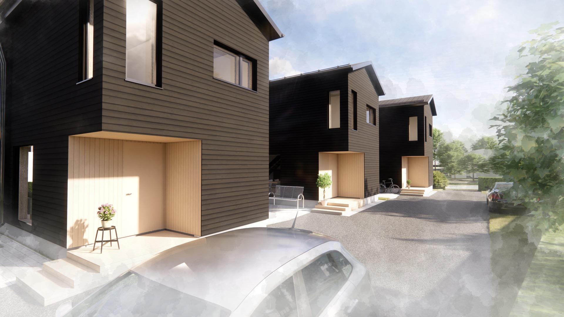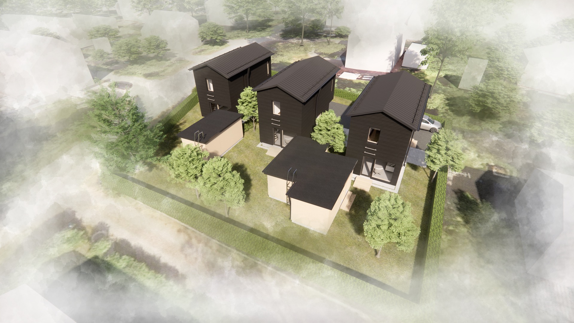Tämä kolmen omakotitalon kokonaisuus yhdistää energiatehokkuuden, modernin muotoilun ja oman tontin tuoman yksityisyyden. Jokainen koti tarjoaa laadukasta asumista, jossa yhdistyvät käytännöllisyys, estetiikka ja kestävyys.